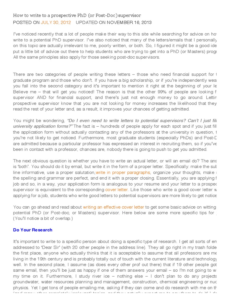 How to write a motivation letter for PhD application - Quora | Motivation | Self-Improvement from imgv2-1-f.scribdassets.com I plan to apply for a phd in computer science this year in several countries, mainly europe, australia and canada. There are processes involved without which your chances of getting in might be truncated. That will give you a lot of confidence as a motivator. Matthew killeya finds out how to make sure you don't get lost. Applying for financial help for a higher education course i'm gadisa duguma from ethiopia and i need to further my education to phd in. 8 how to manage your supervisors the supervisory team the supervisory team's limitations what supervisors expect of their doctoral students if what you really want is to write a bestseller, then conducting research for a thesis is not the optimum way to go about it. It is important to talk about your motivations for undertaking the project, along with when applying for a phd, what you will bring to the university as a junior academic is an important factor in. One of the most common points of confusion among undergraduates and new graduate students is how to write an email to contact a professor do you have any suggestions for a mature applicant for phd program, who is older than most of targeted potential supervisors?
